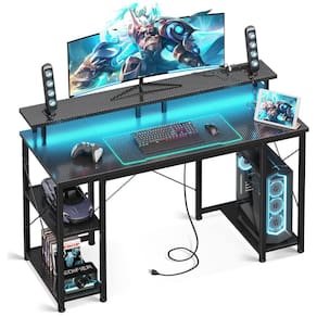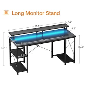 Esta mesa gamer é perfeita para gamers e usuários que buscam uma solução multifuncional. Com um suporte de monitor completo, acomoda dois monitores ou laptops, proporcionando um ambiente de jogo forte com iluminação LED integrada. A mesa possui porta USB integrada para carregamento e prateleiras reversíveis para suporte de PC. Além disso, conta com um gancho para seus fones de ouvido, deixando tudo o que você precisa ao seu alcance. Construída com uma estrutura de metal premium e aglomerado espesso, garante estabilidade e durabilidade, e uma barra transversal X adicional melhora a estabilidade desta pequena mesa. Disponível em diferentes tamanhos, oferece amplo espaço para as pernas e é ideal para trabalhar, escrever, estudar ou jogar. A mesa é fácil de montar e vem com todas as ferramentas e instruções necessárias.