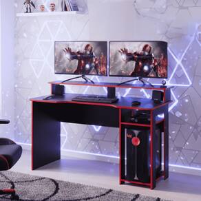 A Mesa Gamer Xtreme 136 cm é o seu posto de comando para jogar, trabalhar e estudar com mais conforto e organização. O design foi pensado para quem passa muitas horas no setup: tampo amplo com borda anatômica (ergonômica), estrutura firme e espaço bem distribuído para manter tudo no lugar.