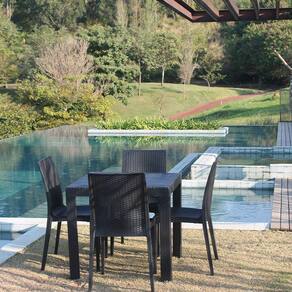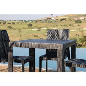 A Mesa Ibiza possui tramas idênticas ao Rattan, com uma grande vantagem: o seu material é todo em polipropileno. Dessa forma, você pode contar com uma mesa com toda delicadeza do Rattan, sem se preocupar com a manutenção. Ela é perfeita para utilização em espaços internos ou externos, fabricada com material resistente à chuva e sol.