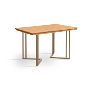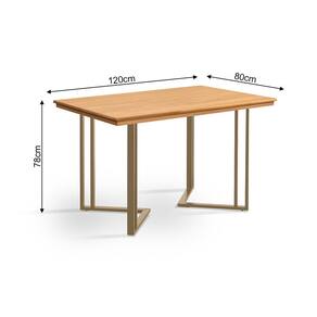 Mesa Industrial 1,20M Alice Tampo Imbuia Em Madeira Maciça Base Cor Champagne - Laranja