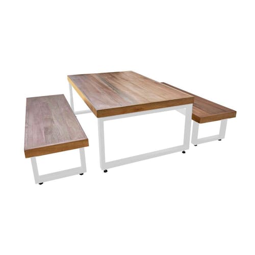 Mesa Industrial Infantil Bernardo 120x70cm Ferragem Branca com 2 Bancos Industriais - Marrom