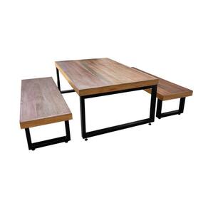 Características Tipo: Conjunto mesa com bancos Modelo: Bernardo Cor: Madeira maciça Cor base: Preto