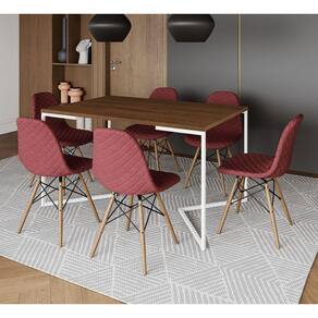 A mesa de jantar é um dos poucos móveis que efetivamente reúne a família para saborear um bom prato ao lado das pessoas que mais ama. E para garantir que o seu ambiente fique impecável, conte com a Mesa De Jantar Industrial. As laterais vazadas, sua forma reta e sua base em V conferem sofisticação e ótimo aproveitamento no cômodo.Tipo: ConjuntoModelo: Industrial Base VCor Tampo Mesa: AmêndoaCor Base Mesa: BrancoCor Assento Cadeira: VermelhaCor base Cadeira: MadeiraMedidas da Mesa:Altura: 78cmComprimento: 90cmLargura: 137cmMedidas da Cadeira:Altura: 85cmLargura: 47cmComprimento: 37cmATENÇÃOIMAGENS MERAMENTE ILUSTRATIVAS REALIZADO EDIÇÃO, PODENDO HAVER UMA PEQUENA VARIAÇÃO DE COR DEPENDENDO DE CADA TELA OU MONITOR.