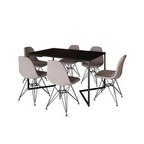 Mesa Industrial Retangular Base V 137x90cm Preta C/ 6 Cadeiras Estofadas Eames Nude Médio Aço Preto
