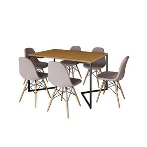 A mesa de jantar é um dos poucos móveis que efetivamente reúne a família para saborear um bom prato ao lado das pessoas que mais ama. E para garantir que o seu ambiente fique impecável, conte com a Mesa De Jantar Industrial. As laterais vazadas, sua forma reta e sua base em V conferem sofisticação e ótimo aproveitamento no cômodo.Tipo: ConjuntoModelo: Industrial Base VCor Tampo Mesa: CanelaCor Base Mesa: PretoCor Assento Cadeira: Nude MédioBase Cadeira: MadeiraMedidas da Mesa:Altura: 78cmComprimento: 90cmLargura: 137cmMedidas da Cadeira:Altura: 85cmLargura: 47cmComprimento: 37cmATENÇÃOIMAGENS MERAMENTE ILUSTRATIVAS REALIZADO EDIÇÃO, PODENDO HAVER UMA PEQUENA VARIAÇÃO DE COR DEPENDENDO DE CADA TELA OU MONITOR. Ean: 7895412036982