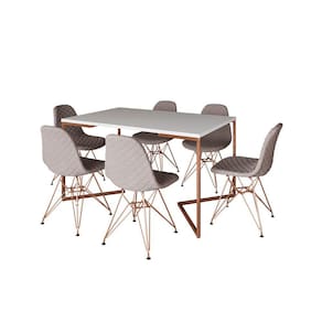 A mesa de jantar é um dos poucos móveis que efetivamente reúne a família para saborear um bom prato ao lado das pessoas que mais ama. E para garantir que o seu ambiente fique impecável, conte com a Mesa De Jantar Industrial. As laterais vazadas, sua forma reta e sua base em V conferem sofisticação e ótimo aproveitamento no cômodo.Tipo: ConjuntoModelo: Industrial Base VCor Tampo Mesa: BrancoCor Base Mesa: CobreCor Assento Cadeira: Nude MédioCor Base Cadeira: CobreMedidas da Mesa:Altura: 78cmComprimento: 90cmLargura: 137cmMedidas da Cadeira:Altura: 85cmLargura: 47cmComprimento: 37cmATENÇÃOIMAGENS MERAMENTE ILUSTRATIVAS REALIZADO EDIÇÃO, PODENDO HAVER UMA PEQUENA VARIAÇÃO DE COR DEPENDENDO DE CADA TELA OU MONITOR.