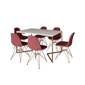 A mesa de jantar é um dos poucos móveis que efetivamente reúne a família para saborear um bom prato ao lado das pessoas que mais ama. E para garantir que o seu ambiente fique impecável, conte com a Mesa De Jantar Industrial. As laterais vazadas, sua forma reta e sua base em V conferem sofisticação e ótimo aproveitamento no cômodo.Tipo: ConjuntoModelo: Industrial Base VCor Tampo Mesa: BrancoCor Base Mesa: CobreCor Assento Cadeira: VermelhoCor Base Cadeira: CobreMedidas da Mesa:Altura: 78cmComprimento: 90cmLargura: 137cmMedidas da Cadeira:Altura: 85cmLargura: 47cmComprimento: 37cmATENÇÃOIMAGENS MERAMENTE ILUSTRATIVAS REALIZADO EDIÇÃO, PODENDO HAVER UMA PEQUENA VARIAÇÃO DE COR DEPENDENDO DE CADA TELA OU MONITOR.