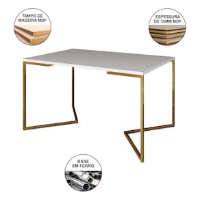 A mesa de jantar é um dos poucos móveis que efetivamente reúne a família para saborear um bom prato ao lado das pessoas que mais ama. E para garantir que o seu ambiente fique impecável, conte com a Mesa De Jantar Industrial. As laterais vazadas, sua forma reta e sua base em V conferem sofisticação e ótimo aproveitamento no cômodo.Tipo: ConjuntoModelo: Industrial Base VCor Tampo Mesa: BrancoCor Base Mesa: DouradoCor Assento Cadeira: Nude MédioCor Base Cadeira: DouradoMedidas da Mesa:Altura: 78cmComprimento: 90cmLargura: 137cmMedidas da Cadeira:Altura: 85cmLargura: 47cmComprimento: 37cmATENÇÃOIMAGENS MERAMENTE ILUSTRATIVAS REALIZADO EDIÇÃO, PODENDO HAVER UMA PEQUENA VARIAÇÃO DE COR DEPENDENDO DE CADA TELA OU MONITOR.