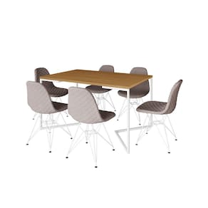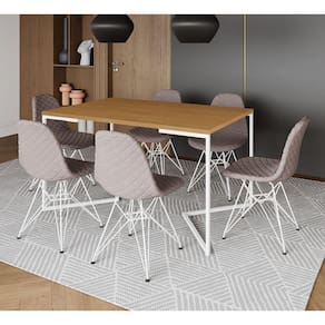 A mesa de jantar é um dos poucos móveis que efetivamente reúne a família para saborear um bom prato ao lado das pessoas que mais ama. E para garantir que o seu ambiente fique impecável, conte com a Mesa De Jantar Industrial. As laterais vazadas, sua forma reta e sua base em V conferem sofisticação e ótimo aproveitamento no cômodo.Tipo: ConjuntoModelo: Industrial Base VCor Tampo Mesa: Canela Cor Base Mesa: BrancoCor Assento Cadeira: Nude médio Cor base Cadeira: Branco Medidas da Mesa:Altura: 78cmComprimento: 90cmLargura: 137cmMedidas da Cadeira:Altura: 85cmLargura: 47cmComprimento: 37cmATENÇÃOIMAGENS MERAMENTE ILUSTRATIVAS REALIZADO EDIÇÃO, PODENDO HAVER UMA PEQUENA VARIAÇÃO DE COR DEPENDENDO DE CADA TELA OU MONITOR.