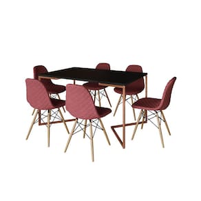 A mesa de jantar é um dos poucos móveis que efetivamente reúne a família para saborear um bom prato ao lado das pessoas que mais ama. E para garantir que o seu ambiente fique impecável, conte com a Mesa De Jantar Industrial. As laterais vazadas, sua forma reta e sua base em V conferem sofisticação e ótimo aproveitamento no cômodo.Tipo: ConjuntoModelo: Industrial Base VCor Tampo Mesa: PretoCor Base Mesa: CobreCor Assento Cadeira: VermelhoBase Cadeira: MadeiraMedidas da Mesa:Altura: 78cmComprimento: 90cmLargura: 137cmMedidas da Cadeira:Altura: 85cmLargura: 47cmComprimento: 37cmATENÇÃOIMAGENS MERAMENTE ILUSTRATIVAS REALIZADO EDIÇÃO, PODENDO HAVER UMA PEQUENA VARIAÇÃO DE COR DEPENDENDO DE CADA TELA OU MONITOR.