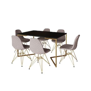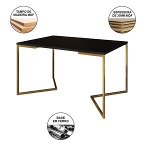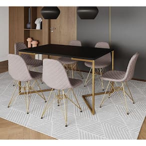 A mesa de jantar é um dos poucos móveis que efetivamente reúne a família para saborear um bom prato ao lado das pessoas que mais ama. E para garantir que o seu ambiente fique impecável, conte com a Mesa De Jantar Industrial. As laterais vazadas, sua forma reta e sua base em V conferem sofisticação e ótimo aproveitamento no cômodo.Tipo: ConjuntoModelo: Industrial Base VCor Tampo Mesa: PretoCor Base Mesa: DouradoCor Assento Cadeira: Nude MédioCor Base Cadeira: DouradoMedidas da Mesa:Altura: 78cmComprimento: 90cmLargura: 137cmMedidas da Cadeira:Altura: 85cmLargura: 47cmComprimento: 37cmATENÇÃOIMAGENS MERAMENTE ILUSTRATIVAS REALIZADO EDIÇÃO, PODENDO HAVER UMA PEQUENA VARIAÇÃO DE COR DEPENDENDO DE CADA TELA OU MONITOR.