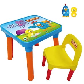 Mesinha Com Cadeira E Boneco Galinha Pintadinha A criançada vai adorar a Galinha Pintadinha Mesinha c/ cadeira e boneco da Monte Líbano. O material é resistente e seguro, leve e fácil de levar para qualquer lugar. Um brinquedo divertido para realizar atividades escolares, desenhar e pintar. A grande surpresa é o boneco da Galinha Pintadinha que a criança vai poder brincar e interagir com seus amigos. A mesa infantil com cadeira tem tampo removível para guardar objetos. Informações: - Recomendado para crianças maiores de 03 anos - Referência: 0360 - Produto: GP Minha Mesinha c/ cadeira e 2 bonecos - Medidas Cadeira Aproximadamente: 45x23x32cm - Medidas Mesa Aproximadamente: 47x49x49cm Contém: - 1 Mesinha - 1 Cadeirinha - 2 Bonecos