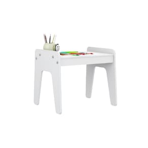 Mesa Infantil Montessori Movelbras Branco. Resistente e funcional, a mesa infantil foi desenvolvida para ser um local de atividades onde a criança pode desenhar, pintar e brincar. Possui tampo revestido em laminado decorativo de alta pressão, antialérgico, possibilitando uma limpeza rápida e eficiente. Material: MDP.
