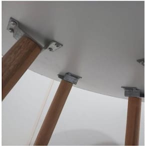 - Material: Tampo MDF 18mm - Cadeira Polipropileno - Pés Eucalipto - Bases Madeira e Aço