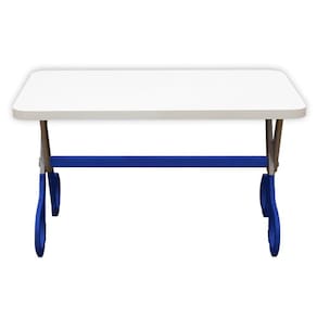 Mesa Infantil Tesoura Azul Tampo Branco Retangular Base Temática Para Estudos E Desenhos Mobília Decor Mesinha Infantil Pé Tesoura Mesa infantil prática e estável, com base em formato de tesoura em MDF e tampo Branco TX, ideal para atividades, desenhos e leitura em quartos, brinquedotecas e escolinhas.? Medidas e capacidade: 53 cm de altura; 90 x 50 cm; 18 kg; suporta até 10 kg.?