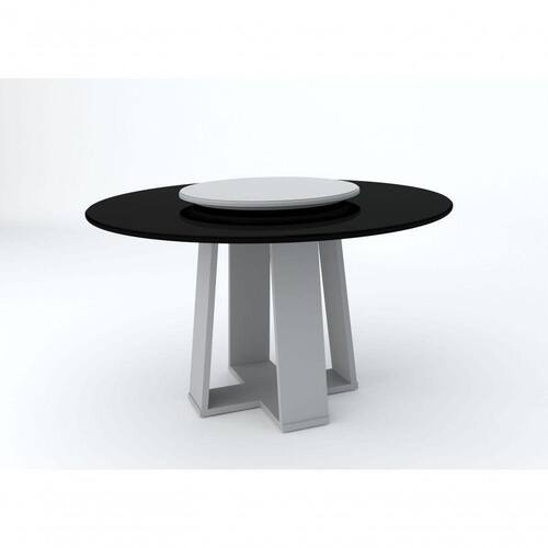 Mesa redonda com estrutura 100% em MDF, vidro colado sobre o tampo e base aberta e tampo giratório.