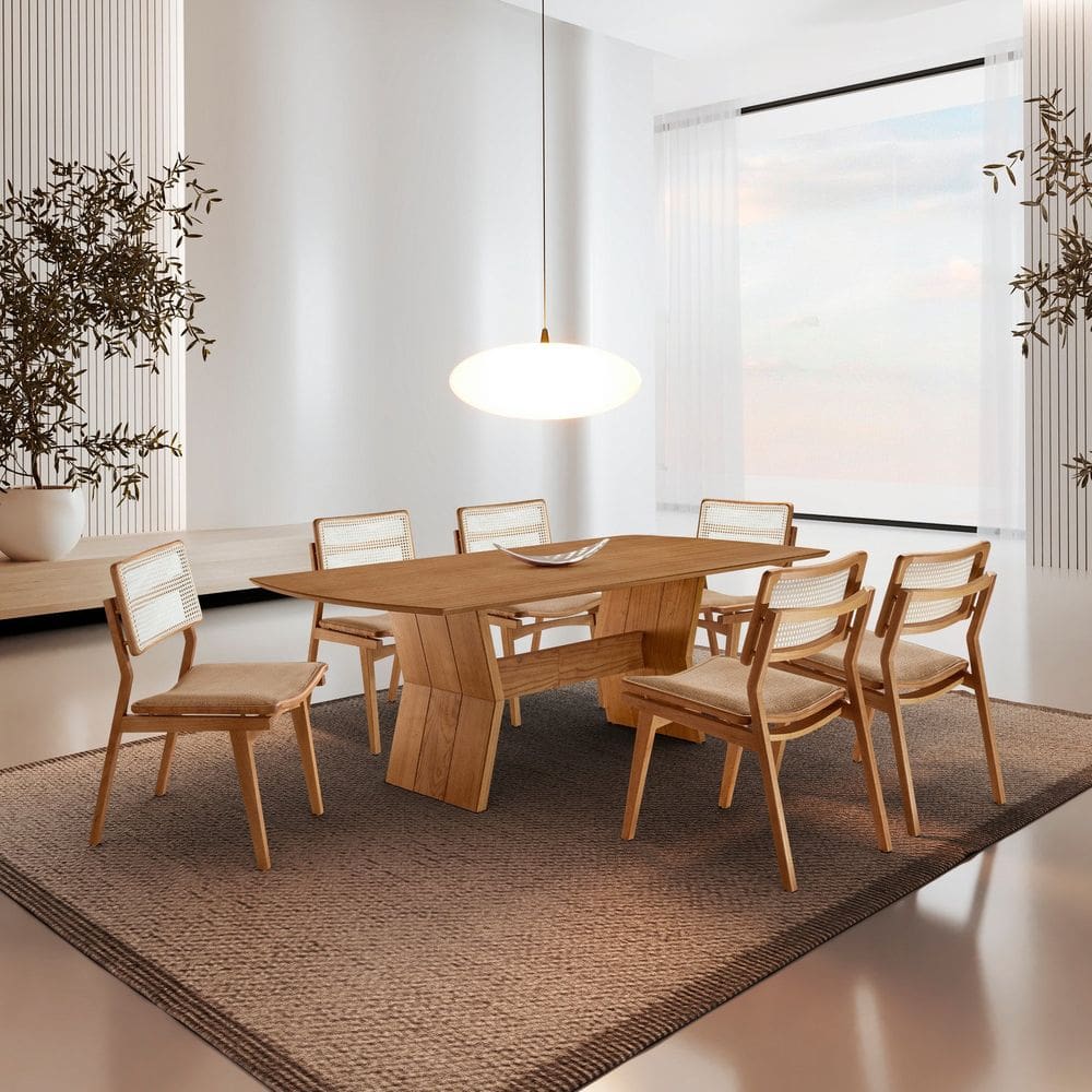 mesa jantar 6 cadeira palha