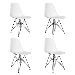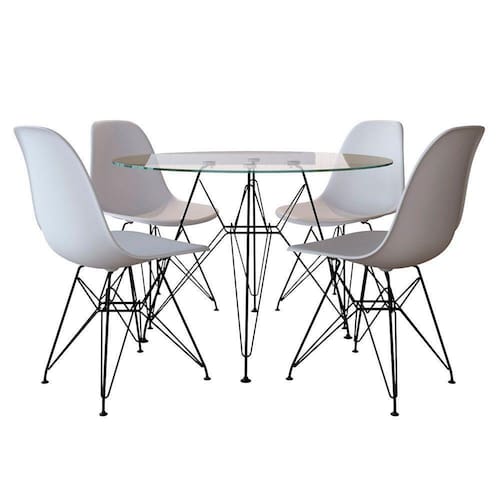 MESA JANTAR EAMES DE FERRO PRETO TAMPO REDONDO 90CM VIDRO 4 CADEIRAS BRANCASO Jogo de Mesa 4 Cadeiras Eames se destaca pelo design moderno e sofisticado. A Cadeira Eames é confeccionada em policarbonato, sua base é em ferro, o que confere total resistência e conforto, o tampo é confeccionado em vidro, possuindo base em ferro. O Jogo de Mesa 4 Cadeiras Eames da vida ao ambiente além de combinar com todos os tipos e cores de móveis.Dimensões:Cadeira:Cor: BrancoAltura: 85 cmLargura: 47 cmProfundidade: 50 cmAssento x Chão: 45 cmContém: 04 cadeirasPeso máximo suportado: 120 KgMesa:Cor: VidroAltura: 76cmDiâmetro: 90cmObs: Imagens Meramente IlustrativaMesa Jantar Eames de Ferro Preto Tampo Redondo 90cm Vidro 4 Cadeiras Brancas