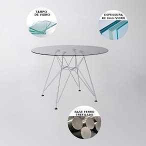 Mesa Jantar De Vidro Redonda 90cm Com Ferro BrancoA Mesa Eiffel é a escolha ideal para deixar sua casa muito mais bonita e renovada. Essa mesa tem em sua estrutura materiais de altíssima qualidade, que proporciona muito mais resistência, mesmo com o passar dos anos. Ela tem formato redondo e possui espaço para 4 lugares, o que é ideal para um jantar em família. A mesa é versátil e combina com vários tipos de decoração, o que dá mais praticidade em casa.Tipo: MesaModelo: EiffelCor: Tampo Redondo vidroDimensões do Produto- Altura: 76cm- Diâmetro:Características- Base: Madeira com ferro entrelaçado preto / branco / cobre- Tampo de Vidro / Madeira (mdp) com espessura de 25mm- Necessita Montagem? Parcialmente (Produto Entregue Montado Parcialmente)Mesa Jantar de Vidro Redonda 90cm com Ferro Branco - Up Home