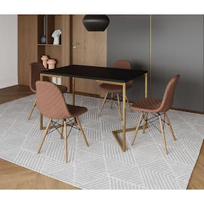 A mesa de jantar é um dos poucos móveis que efetivamente reúne a família para saborear um bom prato ao lado das pessoas que mais ama. E para garantir que o seu ambiente fique impecável, conte com a Mesa De Jantar Industrial. As laterais vazadas, sua forma reta e sua base em V conferem sofisticação e ótimo aproveitamento no cômodo.Tipo: ConjuntoModelo: Industrial Base VCor Tampo mesa: PretoCor Base mesa: DouradoCor Assento cadeira: CarameloBase cadeira: MadeiraMedidas da Mesa:Altura: 77cmComprimento: 75cmLargura: 120cmMedidas da Cadeira:Altura: 85cmLargura: 47cmComprimento: 37cmATENÇÃOIMAGENS MERAMENTE ILUSTRATIVAS REALIZADO EDIÇÃO, PODENDO HAVER UMA PEQUENA VARIAÇÃO DE COR DEPENDENDO DE CADA TELA OU MONITOR.