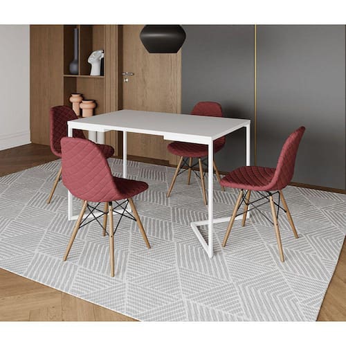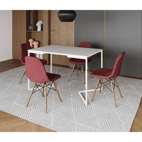 A mesa de jantar é um dos poucos móveis que efetivamente reúne a família para saborear um bom prato ao lado das pessoas que mais ama. E para garantir que o seu ambiente fique impecável, conte com a Mesa De Jantar Industrial. As laterais vazadas, sua forma reta e sua base em V conferem sofisticação e ótimo aproveitamento no cômodo.Tipo: ConjuntoModelo: Industrial Base VCor Tampo mesa: BrancoCor Base mesa: BrancoCor Assento cadeira: VermelhoBase cadeira: MadeiraMedidas da Mesa:Altura: 77cmComprimento: 75cmLargura: 120cmMedidas da Cadeira:Altura: 85cmLargura: 47cmComprimento: 37cmATENÇÃOIMAGENS MERAMENTE ILUSTRATIVAS REALIZADO EDIÇÃO, PODENDO HAVER UMA PEQUENA VARIAÇÃO DE COR DEPENDENDO DE CADA TELA OU MONITOR.