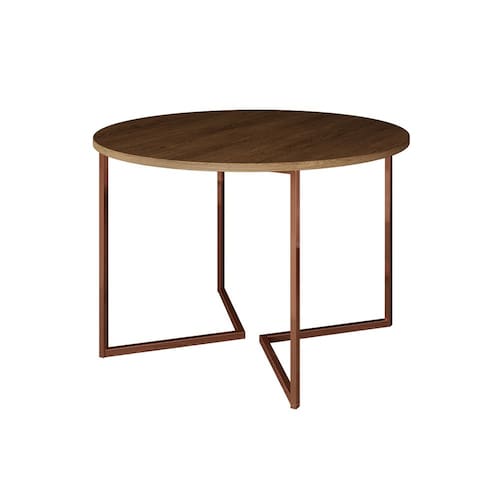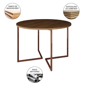 Tipo: Mesa de Jantar Formato: Redonda Modelo: Industrial Base V Cor Base: Cobre Cor Tampo: Amêndoa