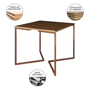 Tipo: Mesa de Jantar Formato: Quadrado Modelo: Industrial Base V Cor Base: Cobre Cor Tampo: Amêndoa
