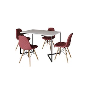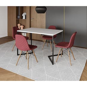 Mesa Jantar Industrial com 4 Cadeiras Estofadas Vermelha Madeira Tampo Branco 120x75 Base V Aço Pret