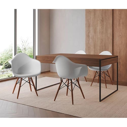 Mesa Jantar Industrial Filadélfia Amêndoa 137x90cm Base Ferro Preto com 4 Poltronas Brancas Eames Ei - Marrom
