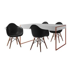 O Conjunto Mesa de jantar Filadélfia e Poltrona Eames é perfeito para reunir a família para saborear um bom prato ao lado das pessoas que mais ama. Garantindo que o seu ambiente fique impecável sem perder o estilo, qualidade e conforto.Tipo: ConjuntoModelo: FiladélfiaBase da Poltrona: MadeiraBase Mesa Ferro: CobreCor Tampo: Branco Cor Assento: Preto Medidas da MesaAltura: 75cmComprimento: 90cmLargura: 137cmMedidas da PoltronaAltura: 80cmLargura: 38cmComprimento: 38cmAssento até o chão: 40cmBraços até o chão: 65cmATENÇÃOIMAGENS MERAMENTE ILUSTRATIVAS REALIZADO EDIÇÃO, PODENDO HAVER UMA PEQUENA VARIAÇÃO DE COR DEPENDENDO DE CADA TELA OU MONITOR.