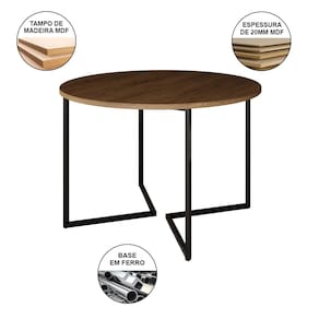 Tipo: Mesa de Jantar Formato: Redonda Modelo: Industrial Base V Cor Base: Preto Cor Tampo: Amêndoa