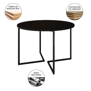 Mesa Jantar Industrial Redonda Preta Base V Ferro Preto Tampo 110cm