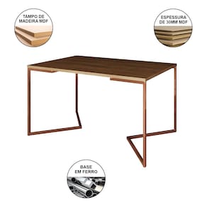 Tipo: Mesa de Jantar Formato: Retângulo Modelo: Industrial Base V Cor Base: Cobre Cor Tampo: Amêndoa