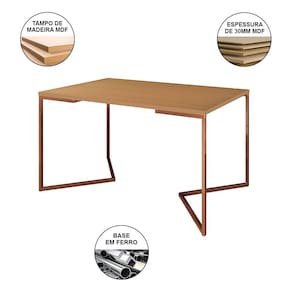 Tipo: Mesa de Jantar Formato: Retângulo Modelo: Industrial Base V Cor Base: Cobre Cor Tampo: Canela