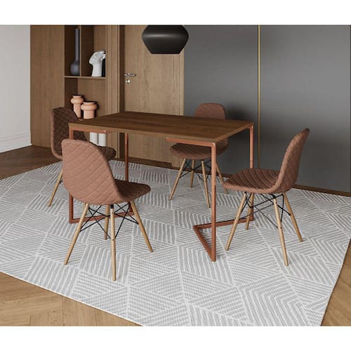 A mesa de jantar é um dos poucos móveis que efetivamente reúne a família para saborear um bom prato ao lado das pessoas que mais ama. E para garantir que o seu ambiente fique impecável, conte com a Mesa De Jantar Industrial. As laterais vazadas, sua forma reta e sua base em V conferem sofisticação e ótimo aproveitamento no cômodo.Tipo: ConjuntoModelo: Industrial Base VCor Tampo mesa: AmêndoaCor Base mesa: CobreCor Assento cadeira: CarameloBase cadeira: MadeiraMedidas da Mesa:Altura: 77cmComprimento: 75cmLargura: 120cmMedidas da Cadeira:Altura: 85cmLargura: 47cmComprimento: 37cmATENÇÃOIMAGENS MERAMENTE ILUSTRATIVAS REALIZADO EDIÇÃO, PODENDO HAVER UMA PEQUENA VARIAÇÃO DE COR DEPENDENDO DE CADA TELA OU MONITOR.