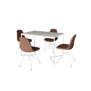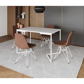 Mesa Jantar Industrial Retangular Base V 120x75cm Branca com 4 Cadeiras Estofadas Caramelo Aço Branc - Branco