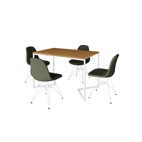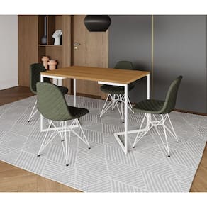 Mesa Jantar Industrial Retangular Base V 120x75cm Canela + 4 Cadeiras Estofadas Verdes Aço Branco - Marrom