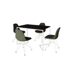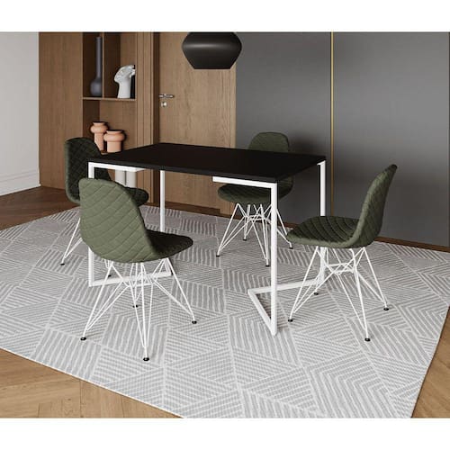 Mesa Jantar Industrial Retangular Base V 120x75cm Preta com 4 Cadeiras Estofadas Verdes Aço Branco - Preto