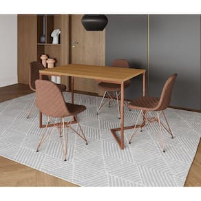 A mesa de jantar é um dos poucos móveis que efetivamente reúne a família para saborear um bom prato ao lado das pessoas que mais ama. E para garantir que o seu ambiente fique impecável, conte com a Mesa De Jantar Industrial. As laterais vazadas, sua forma reta e sua base em V conferem sofisticação e ótimo aproveitamento no cômodo.Tipo: ConjuntoModelo: Industrial Base VCor Tampo mesa: CanelaCor Base mesa: CobreCor Assento cadeira: CarameloCor base cadeira: CobreMedidas da Mesa:Altura: 77cmComprimento: 75cmLargura: 120cmMedidas da Cadeira:Altura: 85cmLargura: 47cmComprimento: 37cmATENÇÃOIMAGENS MERAMENTE ILUSTRATIVAS REALIZADO EDIÇÃO, PODENDO HAVER UMA PEQUENA VARIAÇÃO DE COR DEPENDENDO DE CADA TELA OU MONITOR.