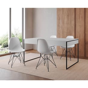 O Conjunto Mesa de jantar Filadélfia e Cadeira Eames é perfeito para reunir a família para saborear um bom prato ao lado das pessoas que mais ama. Garantindo que o seu ambiente fique impecável sem perder o estilo, qualidade e conforto.Tipo: ConjuntoModelo: FiladélfiaBase Ferro: PretoCor Tampo: BrancoCor Assento: BrancoMedidas da MesaAltura: 75cmComprimento: 90cmLargura: 137cmMedidas da CadeiraAltura: 85cmLargura: 47cmComprimento: 50cmAssento até o chão: 45cmATENÇÃOIMAGENS MERAMENTE ILUSTRATIVAS REALIZADO EDIÇÃO, PODENDO HAVER UMA PEQUENA VARIAÇÃO DE COR DEPENDENDO DE CADA TELA OU MONITOR.