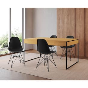 O Conjunto Mesa de jantar Filadélfia e Cadeira Eames é perfeito para reunir a família para saborear um bom prato ao lado das pessoas que mais ama. Garantindo que o seu ambiente fique impecável sem perder o estilo, qualidade e conforto.Tipo: ConjuntoModelo: Filadélfia Base Ferro: PretoCor Tampo: CanelaCor Assento: PretoMedidas da MesaAltura: 75cmComprimento: 90cmLargura: 137cmMedidas da CadeiraAltura: 85cmLargura: 47cmComprimento: 50cmAssento até o chão: 45cmATENÇÃOIMAGENS MERAMENTE ILUSTRATIVAS REALIZADO EDIÇÃO, PODENDO HAVER UMA PEQUENA VARIAÇÃO DE COR DEPENDENDO DE CADA TELA OU MONITOR.