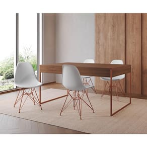 O Conjunto Mesa de jantar Filadélfia e Cadeira Eames é perfeito para reunir a família para saborear um bom prato ao lado das pessoas que mais ama. Garantindo que o seu ambiente fique impecável sem perder o estilo, qualidade e conforto.Tipo: ConjuntoModelo: FiladélfiaBase Ferro: Cobre Cor Tampo: Amêndoa Cor Assento: Branco Medidas da MesaAltura: 75cmComprimento: 90cmLargura: 137cmMedidas da CadeiraAltura: 85cmLargura: 47cmComprimento: 50cmAssento até o chão: 45cmATENÇÃOIMAGENS MERAMENTE ILUSTRATIVAS REALIZADO EDIÇÃO, PODENDO HAVER UMA PEQUENA VARIAÇÃO DE COR DEPENDENDO DE CADA TELA OU MONITOR.