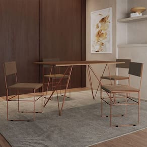 IMAGENS MERAMENTE ILUSTRATIVAS REALIZADO EDIÇÃO, PODENDO HAVER UMA PEQUENA VARIAÇÃO DE COR DEPENDENDO DE CADA TELA OU MONITOR.Mesa Jantar Industrial Trama 1,40x0,80m AmÃndoa Com 4 Cadeiras Estofadas VitÃria Marrom E Cobre