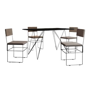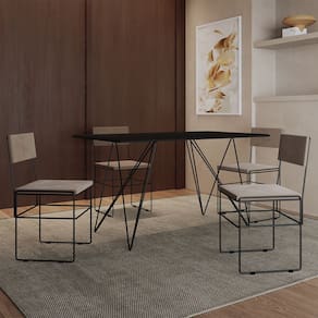 O Conjunto Vitória tem um design industrial que remete a leveza e sofisticação a sua sala de jantar ou escritório. Além disso, é uma ótima opção pra quem procura um produto moderno e bonito, com um ótimo acabamento. Ideal pra quem busca criar um ambiente moderno.