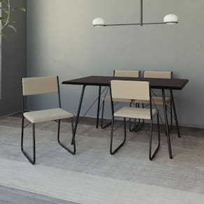 Mesa Jantar Paraty 137cm Tampo Preto Com 4 Cadeiras Angra Estofadas Preta E Bege - Cor: Preto