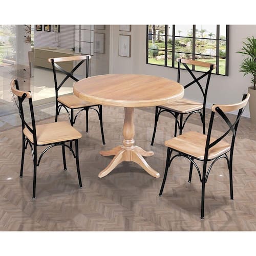 Mesa Jantar Madeira Maciça Redonda 80cm Madalena 4 Cadeiras Paris Base Alumínio l - Cor: Marrom