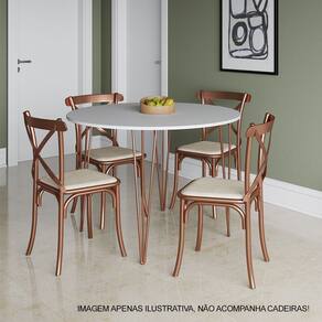 Mesa Jantar Redonda Branca Hairpin 90cm Elen Base Cobre A sua cozinha ou sala de jantar só está completa com uma boa mesa para reunir a família e amigos, se você busca um móvel de qualidade e com combinação de cores, o modelo Elen é para você! Com tampo redondo e estrutura em ferro, ela acomoda os seus convidados enquanto complementa a decoração com sofisticação e qualidade.