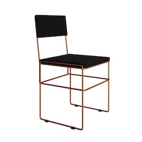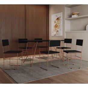 Mesa Jantar Retangular Industrial Trama 1,50x0,90m Preta Com 6 Cadeiras Estofadas Pretas E Cobre Vit