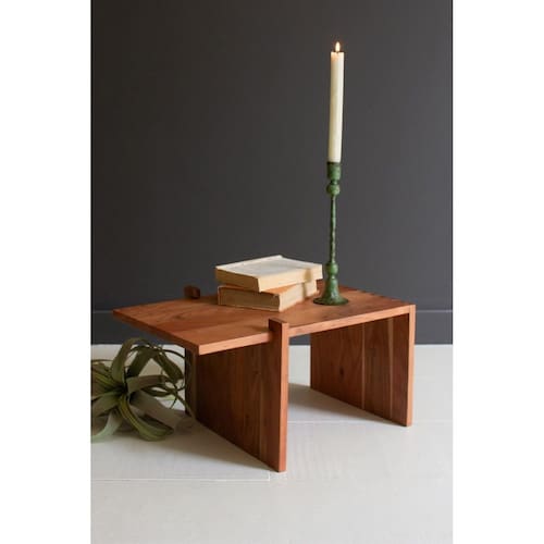 Este incomum elevador de exibição ajustável é feito de madeira de acácia. Angular e resistente, este elevador foi feito na Índia e apresenta juntas em cauda de andorinha. Na última foto, o elevador é mostrado em cima de nossa mesa de café ajustável em madeira de acácia, que é vendida separadamente (NRAH1044).