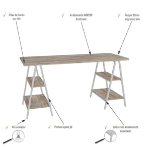 Mesa Kuadra Cavalete 150x60x75cm Carvalho / Carvalho / Sobre o ProdutoMesa Kuadra Cavalete 150X60X75cm Carvalho / Est.BrancaDescrição do Produto:A Mesa Cavalete KUMC6150 é um produto prático e versátil, que pode ser utilizado em diversos ambientes, como quarto e escritório, na sala, cozinha ou seu depó Linha Kuadra tem seu design com inspiração no estilo industrial, que remete muito a decoração usada nos Lofts das grandes metrópoles nos anos 60 e 70. Harmonizando o metal e os tons de madeira, foram projetados móveis versáteis e com estilo, que podem compor ambientes íveis cheios de personalidade, perfeitos para você decorar sua casa ou seu trabalho, tendo um resultado que caminha do estilo rústico ao Inclusos:1 MesaDimensões dos Produtos:Mesa Kuadra Cavalete 150X60X75cm Carvalho / 150 x 60 x 75 cmInformações Logísticas (Comp. X Prof. X Alt.) 155 x 64,5 x 7 cm - Peso: 26,784 KgPeso Total: 26,784 KgObservações:Não acompanha acessórios decorativos. Imagens meramente ilustrativas.Informações Técnicas / Características:- Cor do Produto: Carvalho / - Marca: Compace- Modelo: KUMC6150- Linha: Kuadra- Material: Mdp- Material da Estrutura / Pés: Aço- Acabamento: BP Acetinado- Escala de Brilho: Fosco- Fita de Borda: Pvc - Possui Gavetas: Não - Possui Prateleiras: 4- Peso Máximo por Prateleira: 5- Possui Pés: 2- Pés Niveladores: Sim - Acabamento Estrutura: Epóxi-Pó Texturizado- Formato: Retangular - Suporta Até (kg): 50 kg- Comprimento: 150cm- Profundidade: 60cm- Altura: 75cm - Peso Lí.: 25,79Kg- Recomendações de Uso, Manutenção e Limpeza: Para a limpeza, utilize flanela seca ou pano macio levemente umedecido em água. Utilize um pano seco em seguida. Evite com produtos químicos (solventes, thinner, acetona, etc) e não utilize nenhum tipo de esponja de aço.- Necessita de Montagem: Sim / Acompanha Manual de Montagem- Complexidade da Montagem: Média: pode ser montado por mais de uma pessoa e/ou necessite de maior conhecimento para montagem.- Garantia: 6 meses Material: Mdp | Acabamento: BP Acetinado | Escala de Brilho: Fosco | Fita de Borda: Pvc | Material da Estrutura: Aço | Acabamento da Estrutura: Epóxi-Pó Texturizado | Marca: Compace | Modelo: Mesa de escritório | Produto: Mesa | Cômodo indicado: Escritórios | Cor: Multicolorido | Tonalidade: Multicolorido | Profundidade: 60 | Altura: 75 | Comprimento: 150 | Fabricante: Compace | Coleção: Industrial | Requer Baterias: Não | Certificação Externa: | Componentes inclusos: Manual de montagem e kit acessórios | Preço de tabela: | Compace: do Modelo | 1: da Peça | KUMC6150: | Base da Mesa: | Duração da Garantia: | Dimensões do Produto (A x L x C), sem a caixa de embalagem: | Tipo de Mesa: | País de Origem: | Coleção de Antiguidade: | Montagem: | Móvel Dobrável: | Desing da Escrivaninha: | Recursos da Mesa: | Recursos da Escrivaninha: | Tipo de Garantia: | Produto personalizado: | de Assentos: | Tamanho Do Pacote: | Temas de Estampas: | Motivo de Isenção Anvisa: | Formato do Espelho: | Código Anvisa do Produto: | Shape: | Nr. do Lote do Produto: | Data de validade Anvisa: | Altura da Mesa: | Formato da Escrivaninha: | Qtd. de Produto no Lote: | Funcionalidades: | Estilo: | Quantidade: Cor: Carvalho /